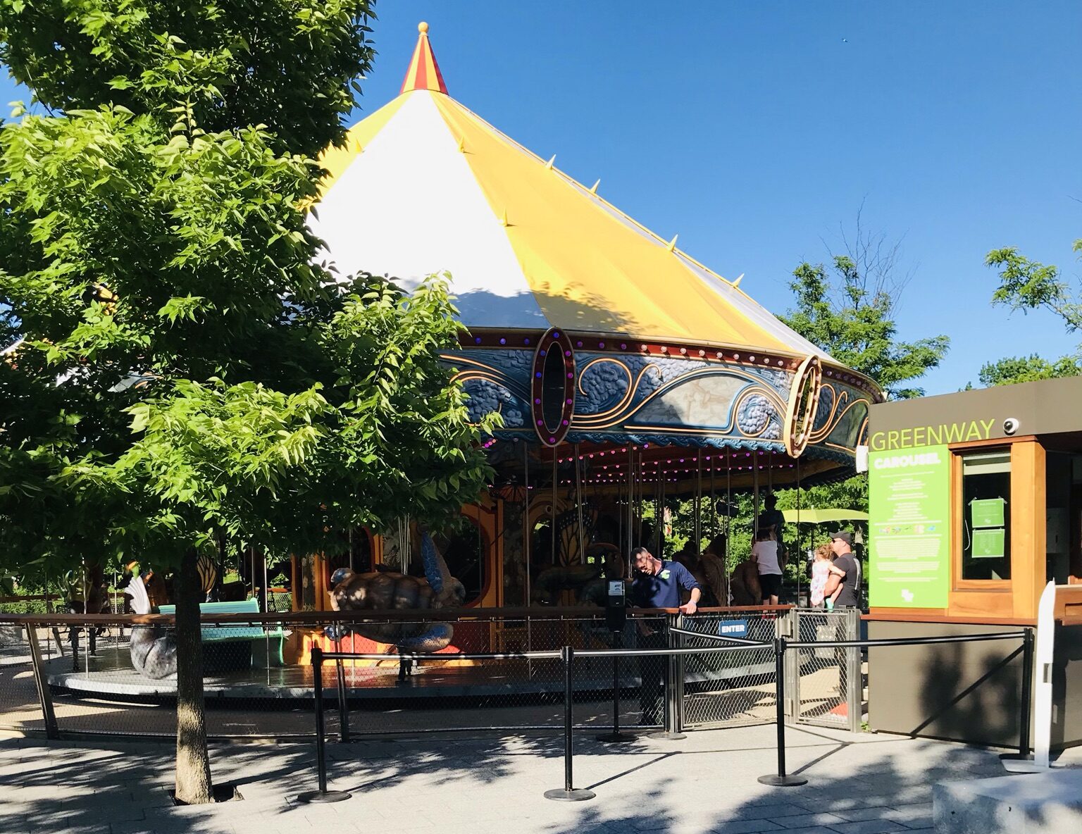 A Greenway Ambassador operates the Rose Kennedy Greenway Carousel.